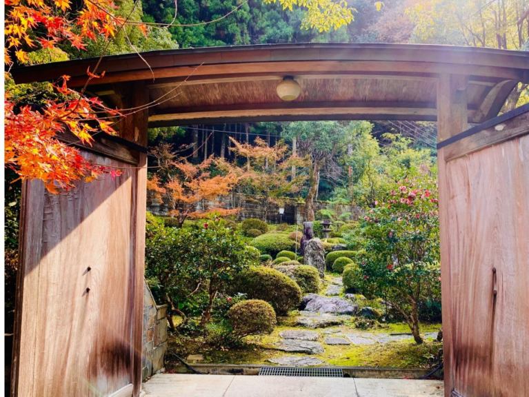 【花園】由單一櫸木板製成的大門