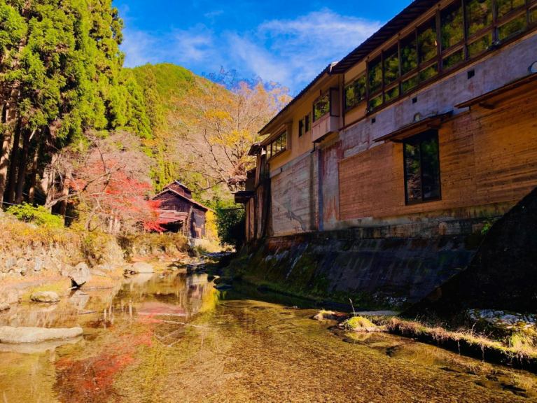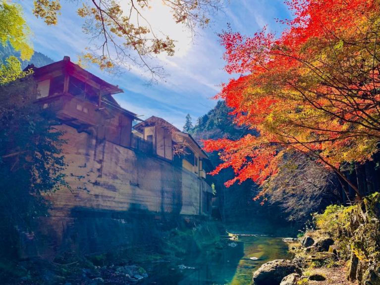 【私人溫泉浴池1】芬芳的高野真希浴室。打開窗戶,一邊眺望江水,一邊彷彿置身於半露天浴池。